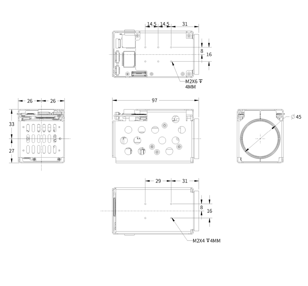 দেখার ক্ষেত্র | এইচ: 59.6 ° ~ 3.2 °, ভি: 35.9 ° ~ 1.8 °, ডি: 66.7 ° ~ 3.7 ° |